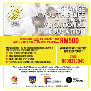 Yayasan raja muda selangor telah melancarkan projek 'kita bantu pelajar' yang bertujuan untuk mengumpulkan sumbangan peranti elektronik seperti desktop, komputer riba, atau tablet untuk diagihkan kepada pelajar sekolah yang memerlukan bagi membantu proses pembelajaran mereka.
